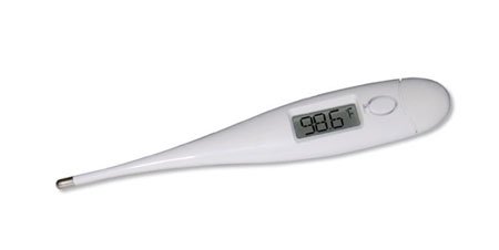 ADCTEMP VII Thermometer features: Jumbo LCD Display, Compact size - under 5" long, weighs just 11 grams. Auto-off function conserves battery life with a range of 90 F-109.9 F +/- .2 F / 32 C - 43.9 C +/- .1 C . Comes with Replaceable 1.55v (LR41) battery which provides 1,500 measurements. Clear plastic case keeps instrument sanitary. Boxed unit complete with 5 sheaths.
